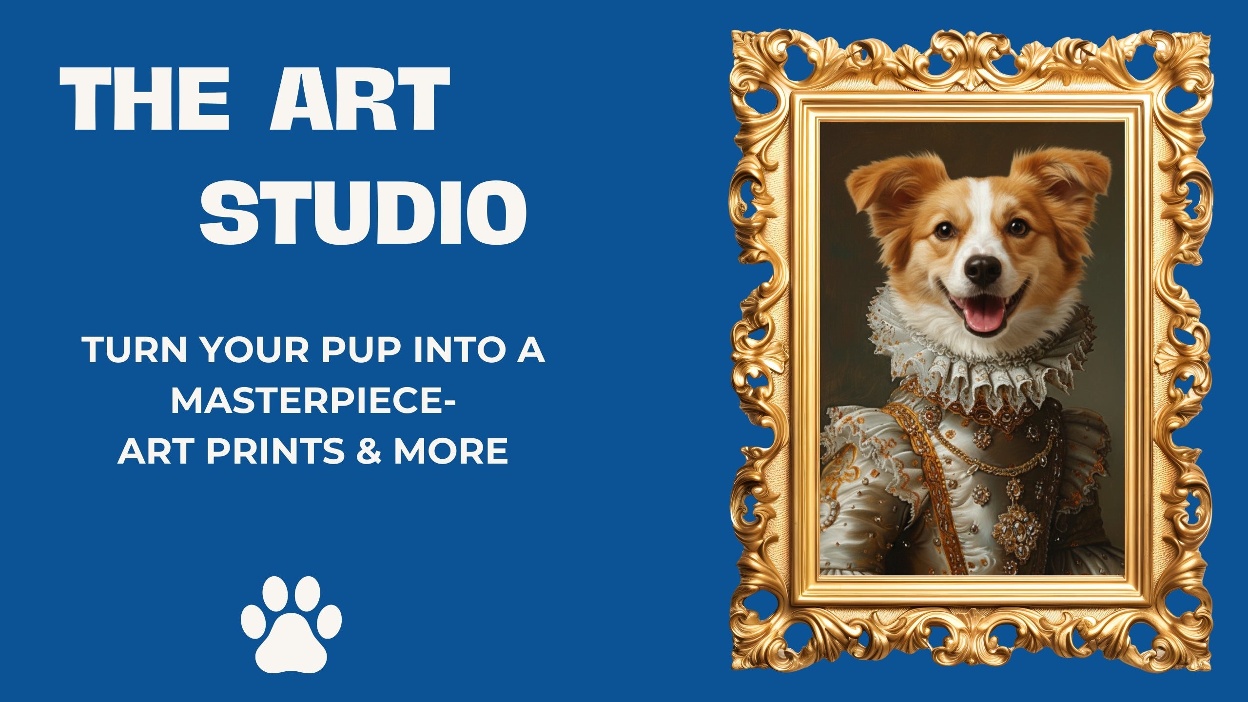 The Fancy Monarch – Custom Dog Portrait with Crown and Feathers