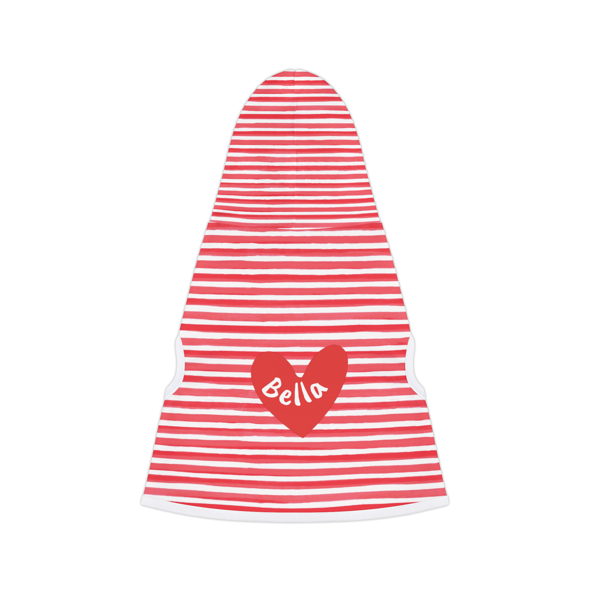 Cheerful striped hoodie with heart and custom dog name.