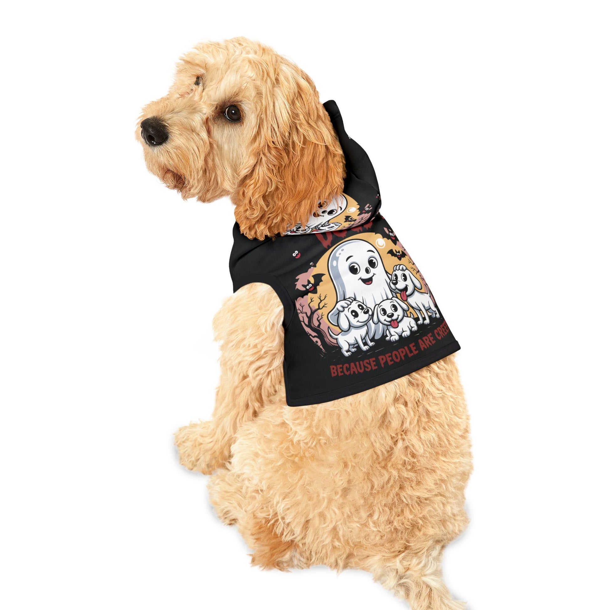Halloween Dog Hoodie – Cute Ghost & Puppy Design with Funny “Dogs Because People Are Creepy” Print